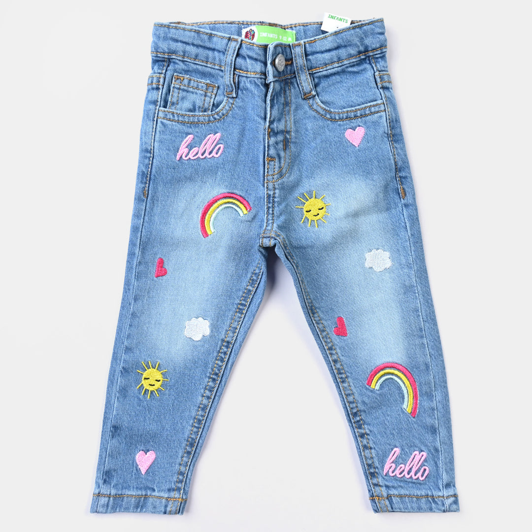 Infant Girls Denim Stretch Pant Sun Shine Rainbow-Ice Blue