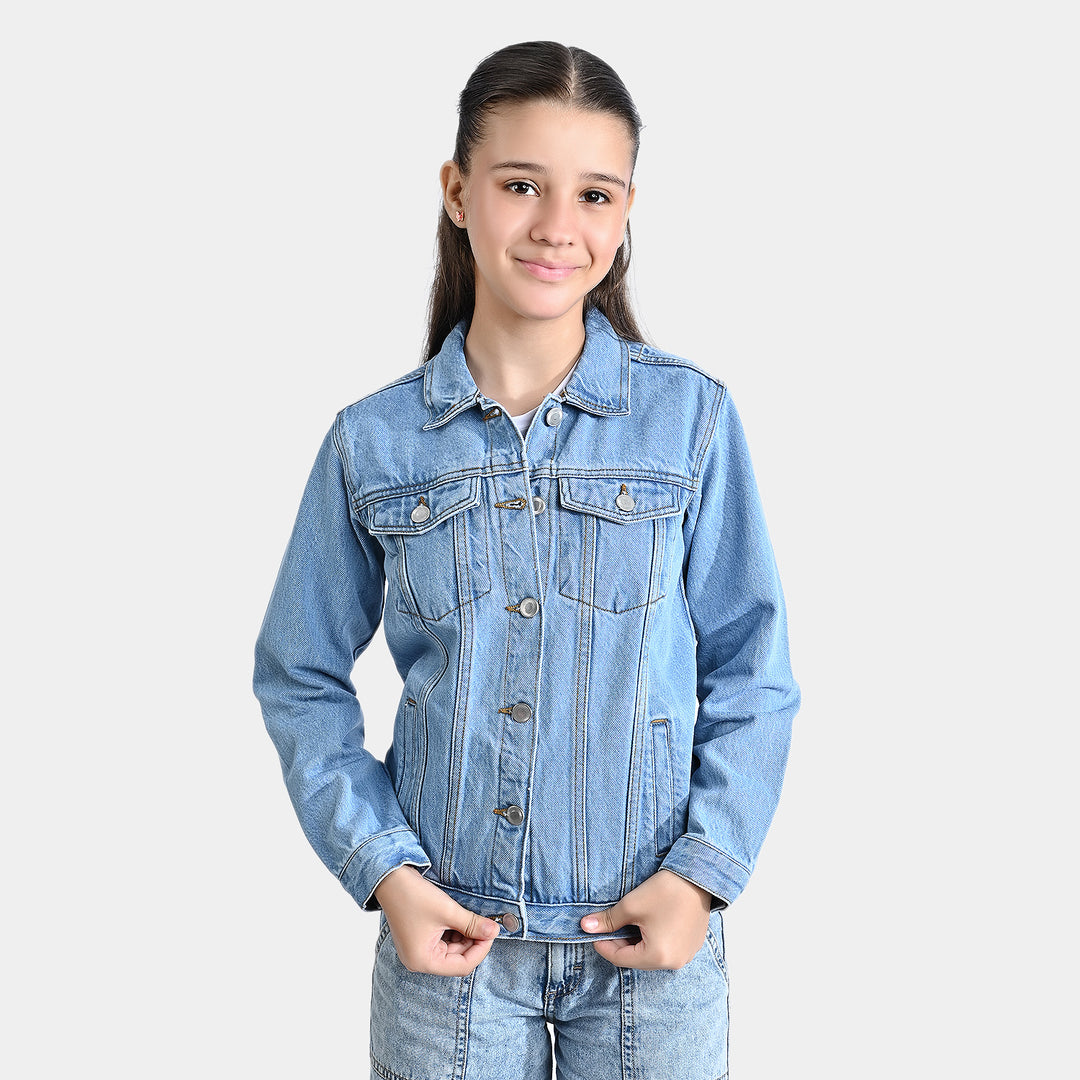 Girls Denim rigid Woven Jacket Basic-LT.Blue
