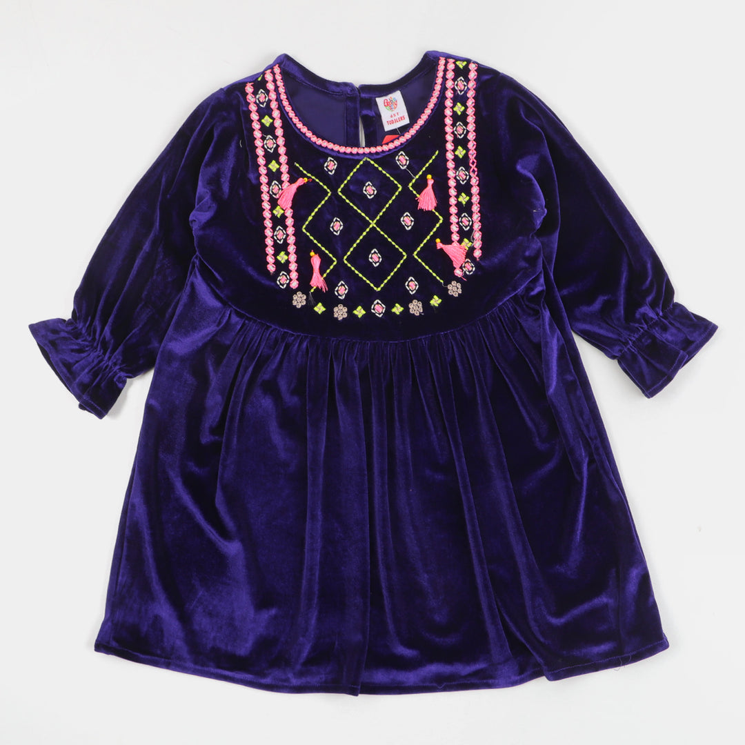 Girls Velvet Embroidered Top Hanging Tassels - Purple