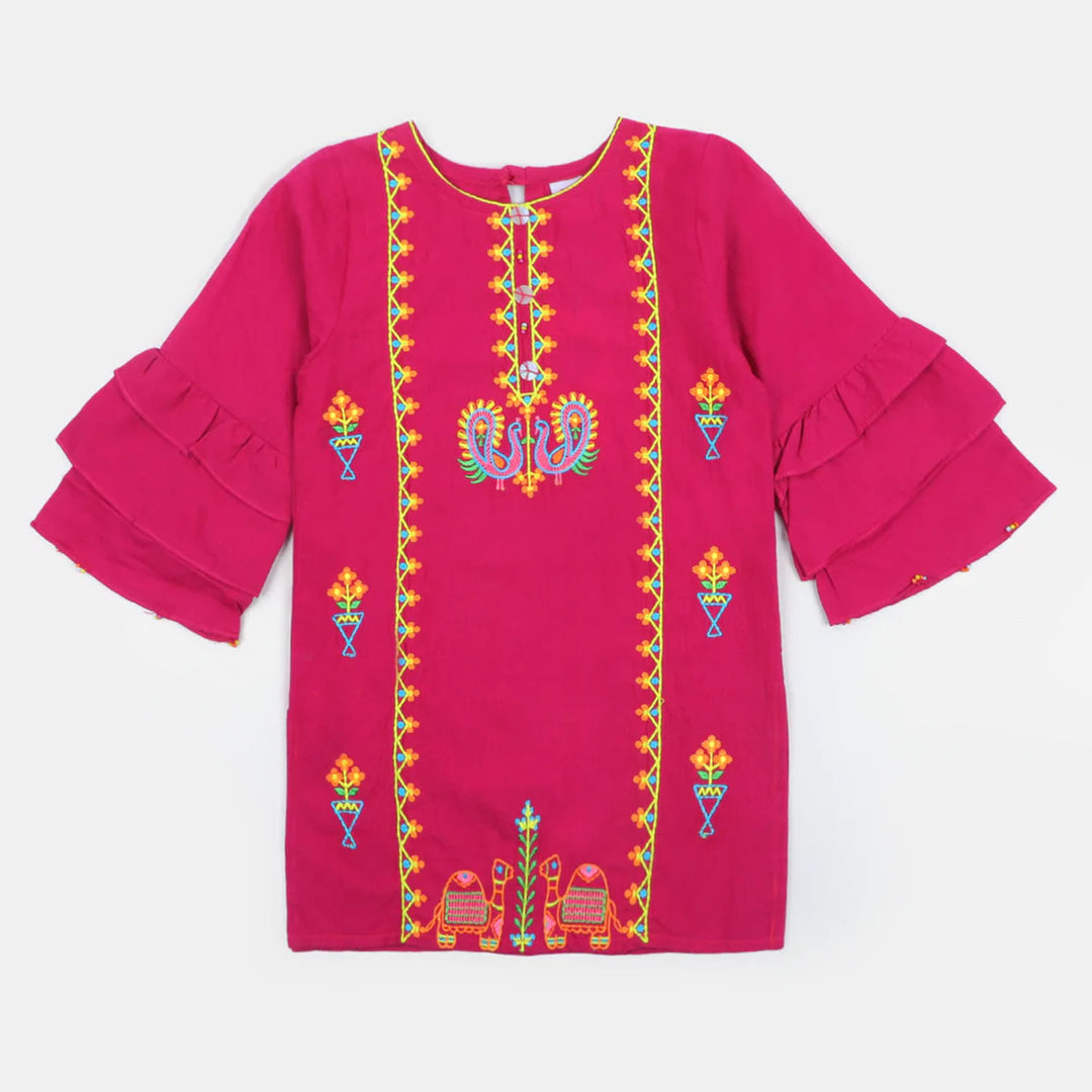 Girls Cotton Poplin Casual Frock Pink Frill-Pink