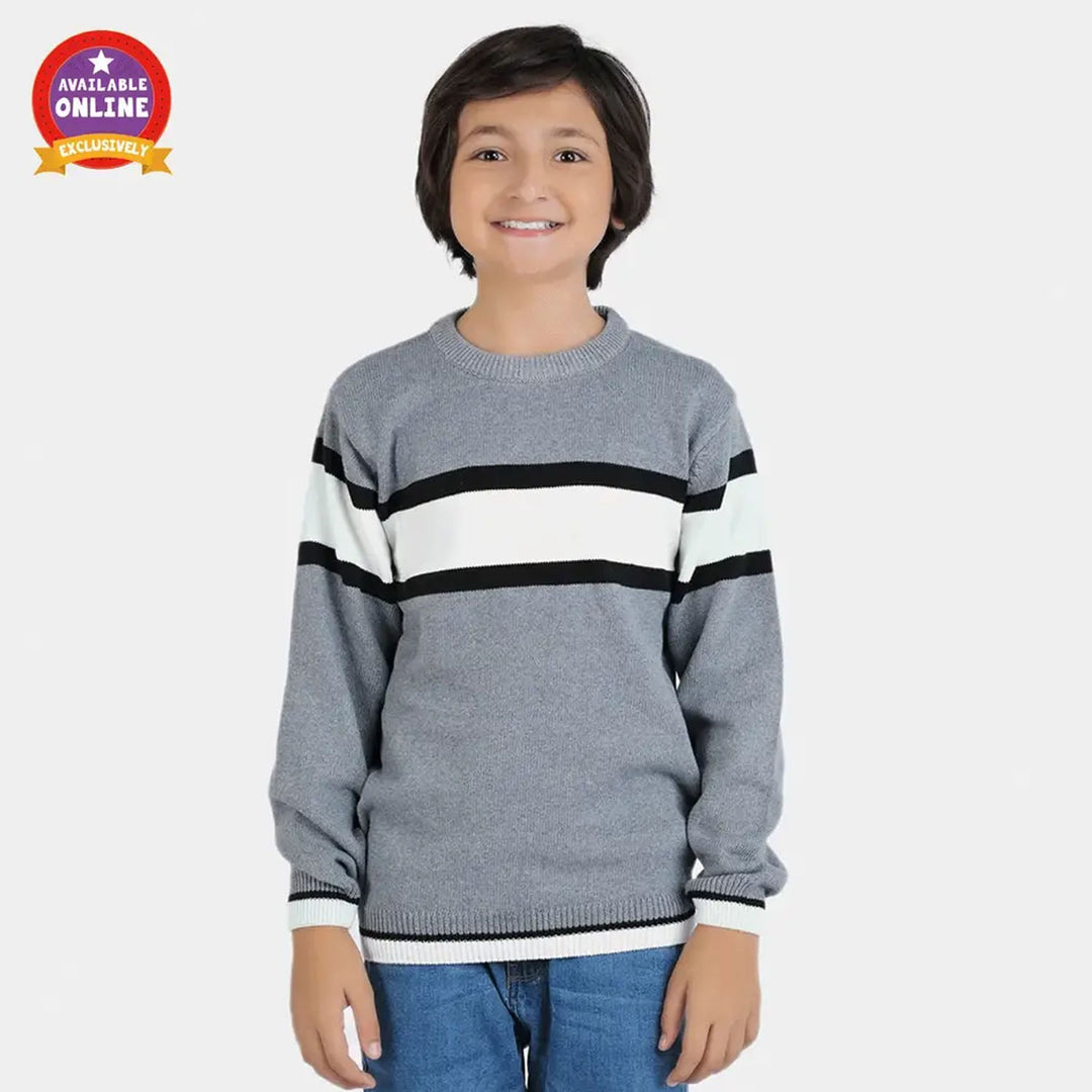 Boys Acrylic Full Sleeves Sweater Striper-Grey/White