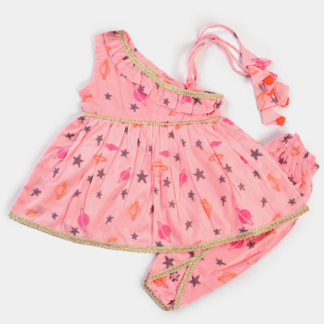 Infant Girls Jacquard Emb 2PC Suit Frill-Pink