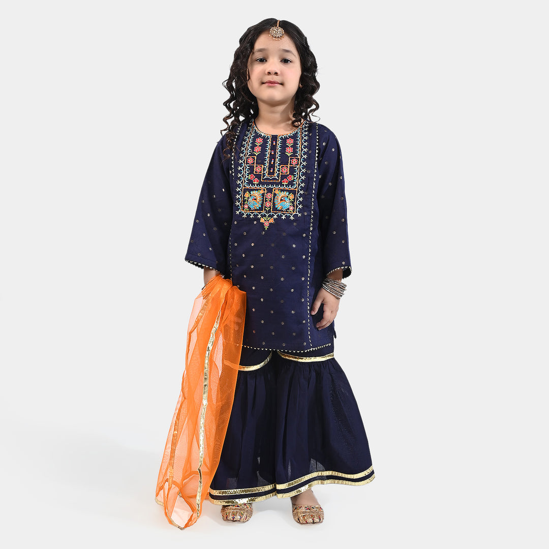 Girls Jacquard 3PCs Suit Rang Nikhaar-Navy Blue
