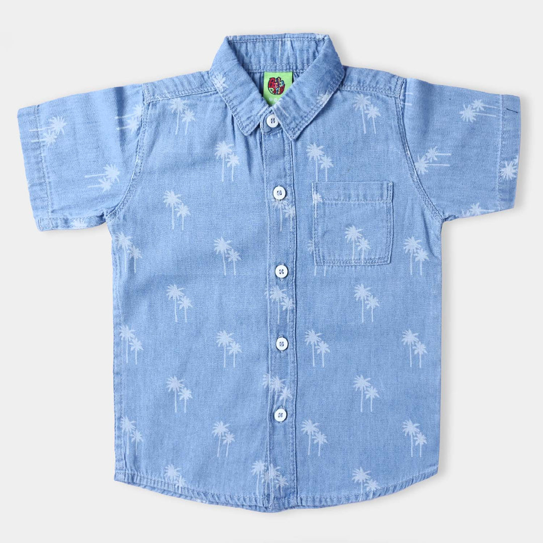 Infant Boys Denim rigid Shirt H/S Play Discharge-LT. Blue