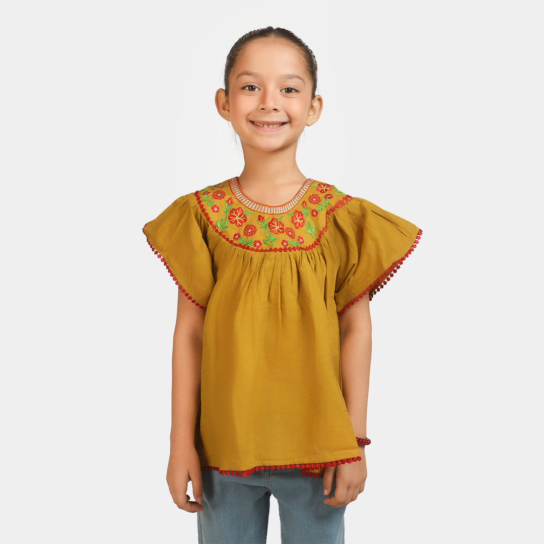 Girls Jacquard Embroidered Top Elegant - Mustard