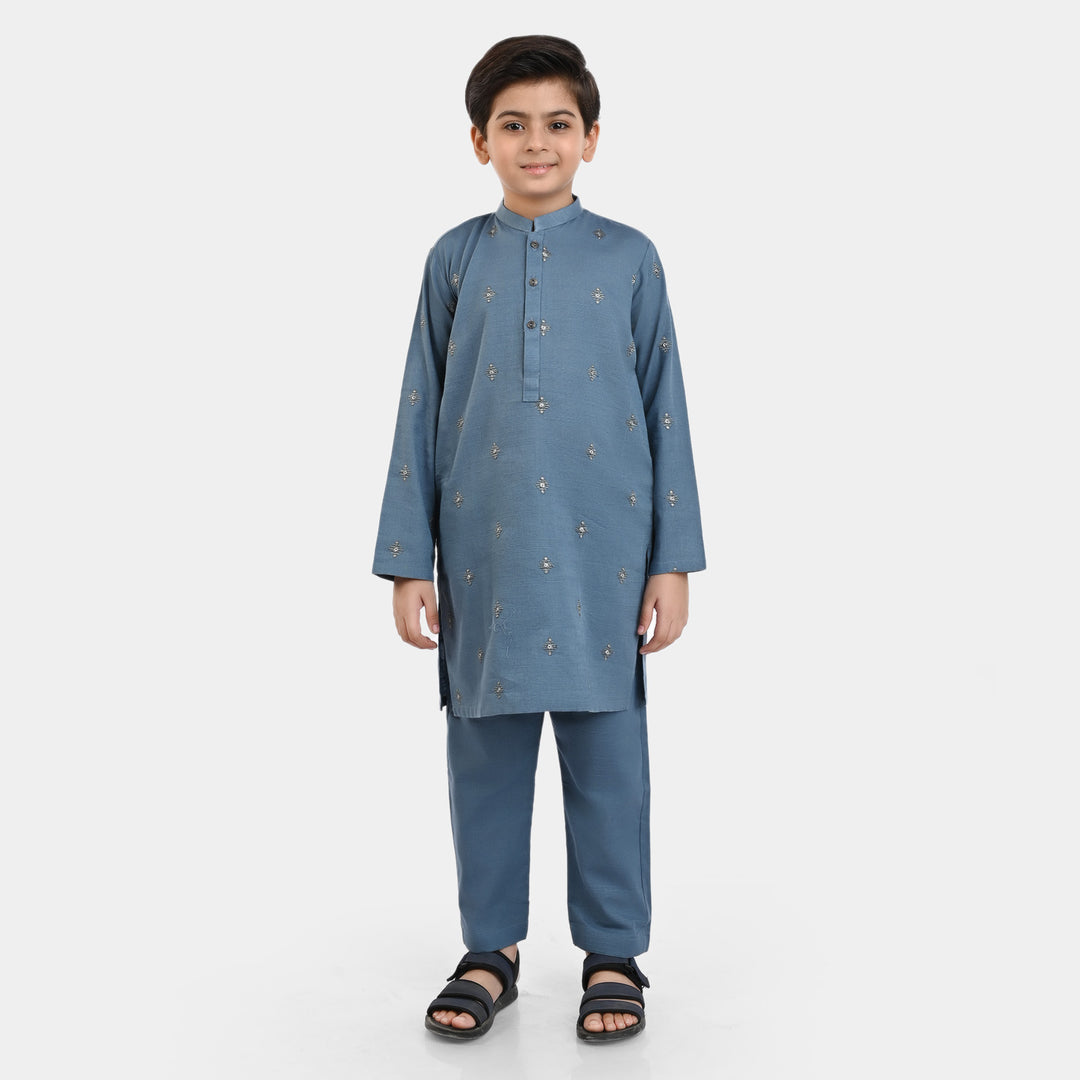 Boys khaddar 2 piece suit Embroidered -P/Blue