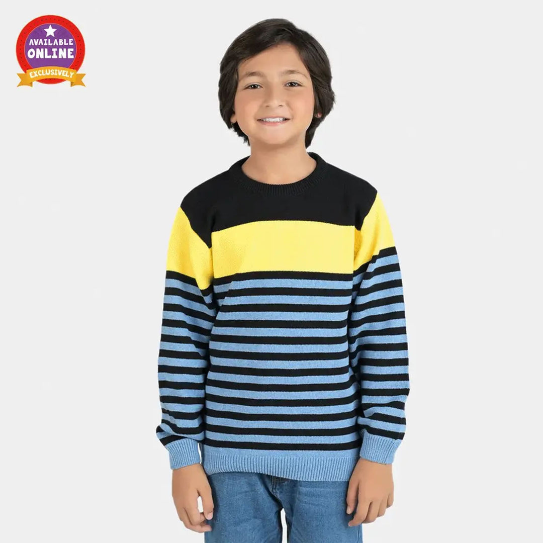 Boys Acrylic Full Sleeves Sweater Striper-Navy/Sky