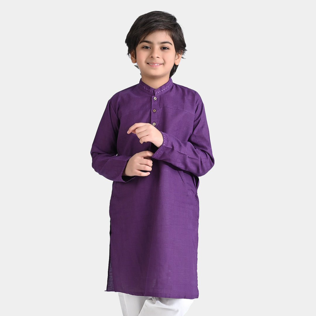 Boys Jacquard Embroidered Kurta (Cut N Sew)-Purple