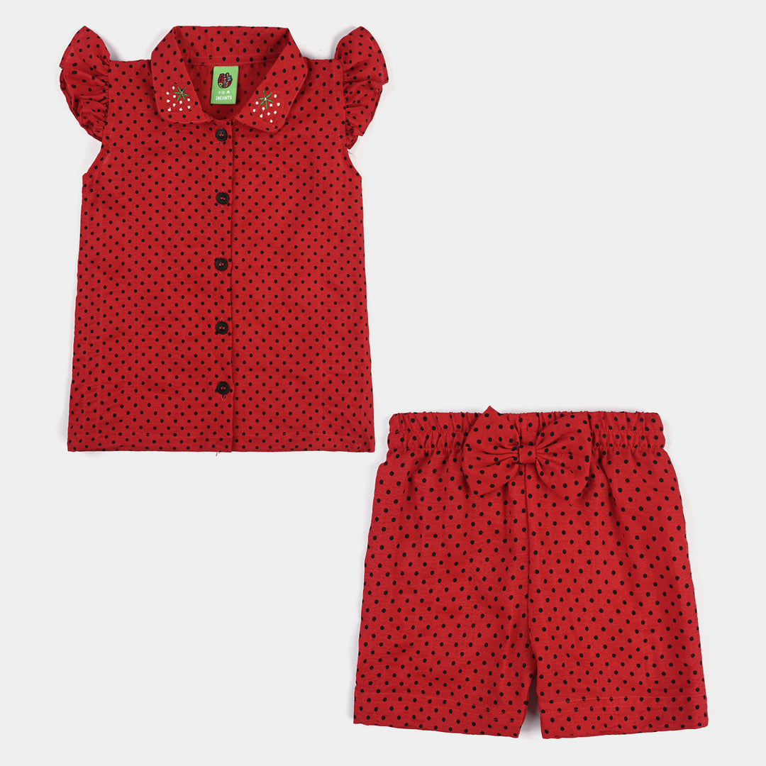 Infant Girls Seersucker 2 PC Black Polka Dot - Red