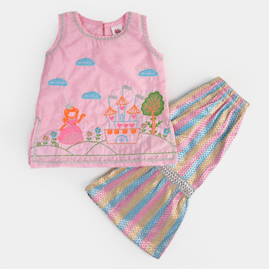 Infant Girls Poly Cotton Emb Top Butterfly Flowers-Pink