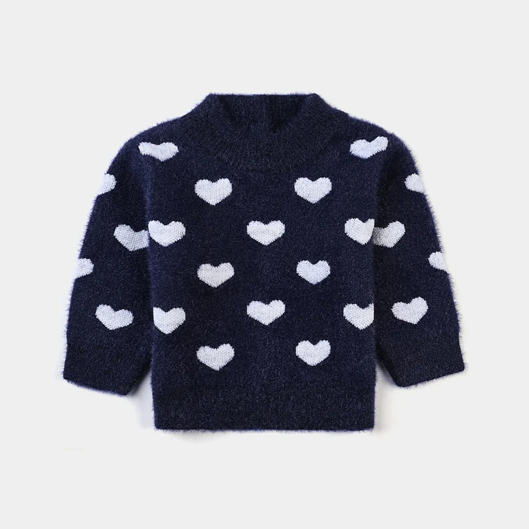 Infant Girls Feather-Acrylic Sweater Feather Heart-NAVY