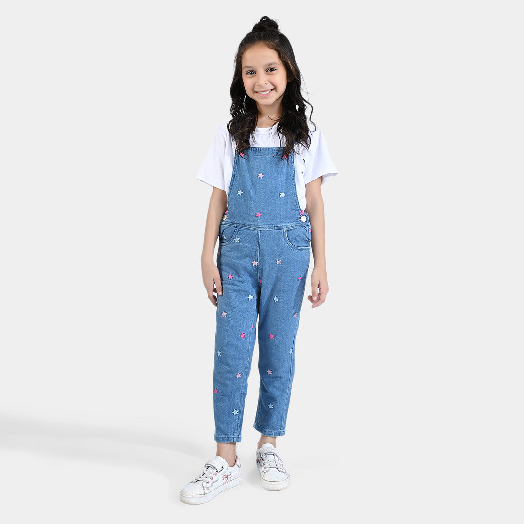 Girls Denim rigid Dangri Stars EMB-LIGHT BLUE