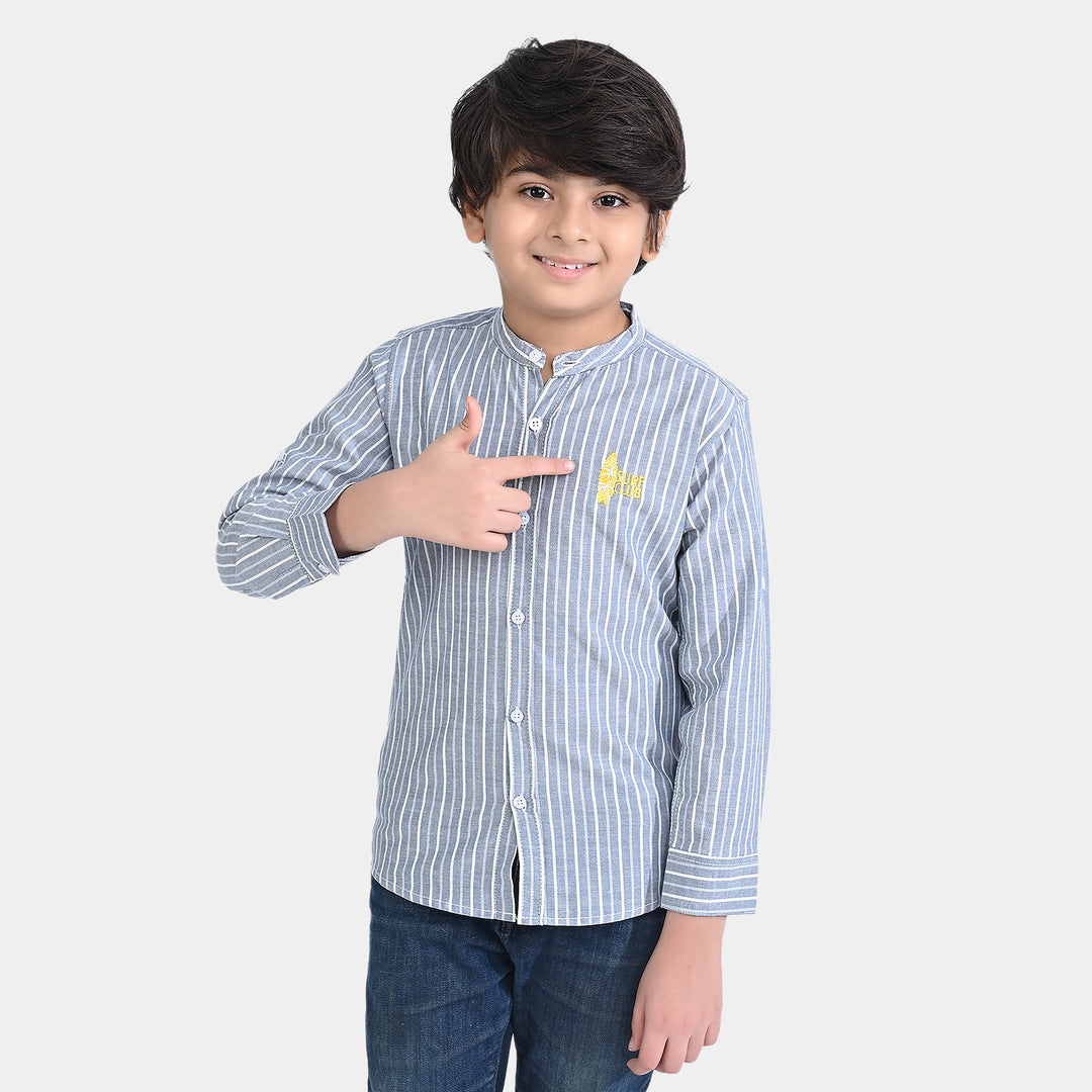 Boys Cotton Casual Shirt F/S Surf Club-Grey/White