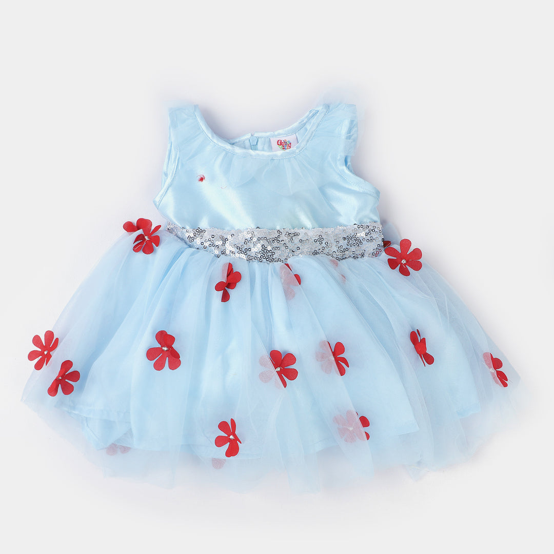 Infant Girls Fancy Frock Flower EMB-LIGHT BLUE