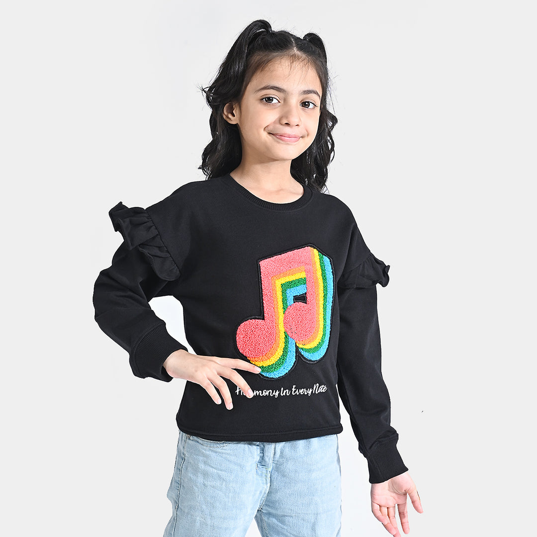 Girls Cotton Terry Sweatshirt Music-Jet Black