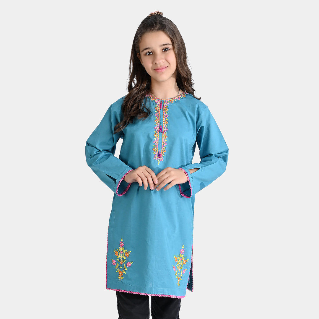 Girls Cotton Slub EMB Kurti Jashan-T.Turquiose