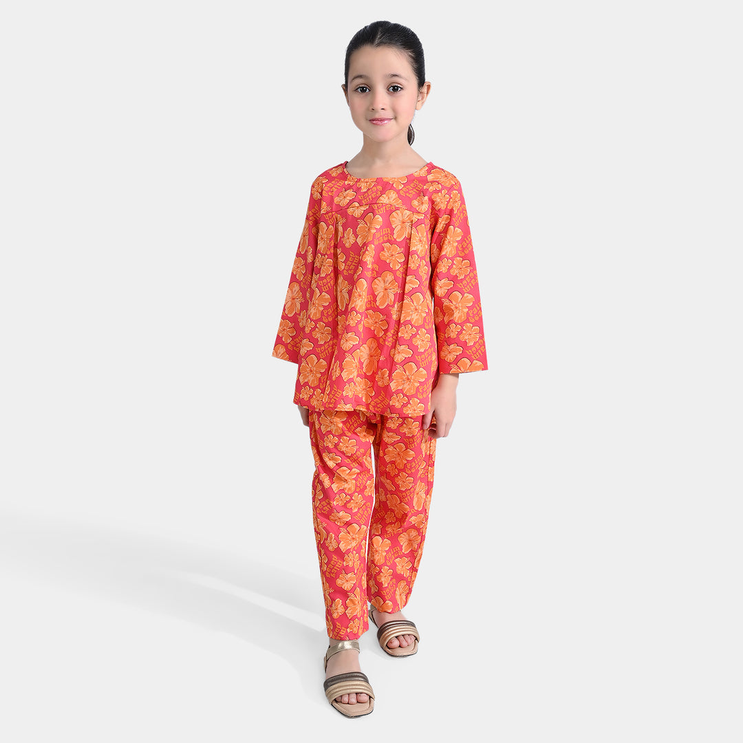 Girls Cotton Poplin Co-ord Set Hibiscus - Orange