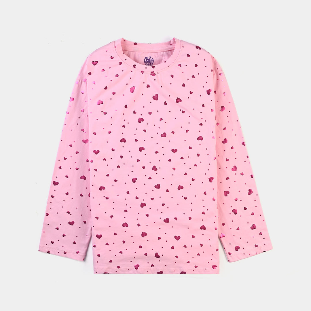 Girls Lycra Jersey T-Shirt F/S Pink Heart-Pink