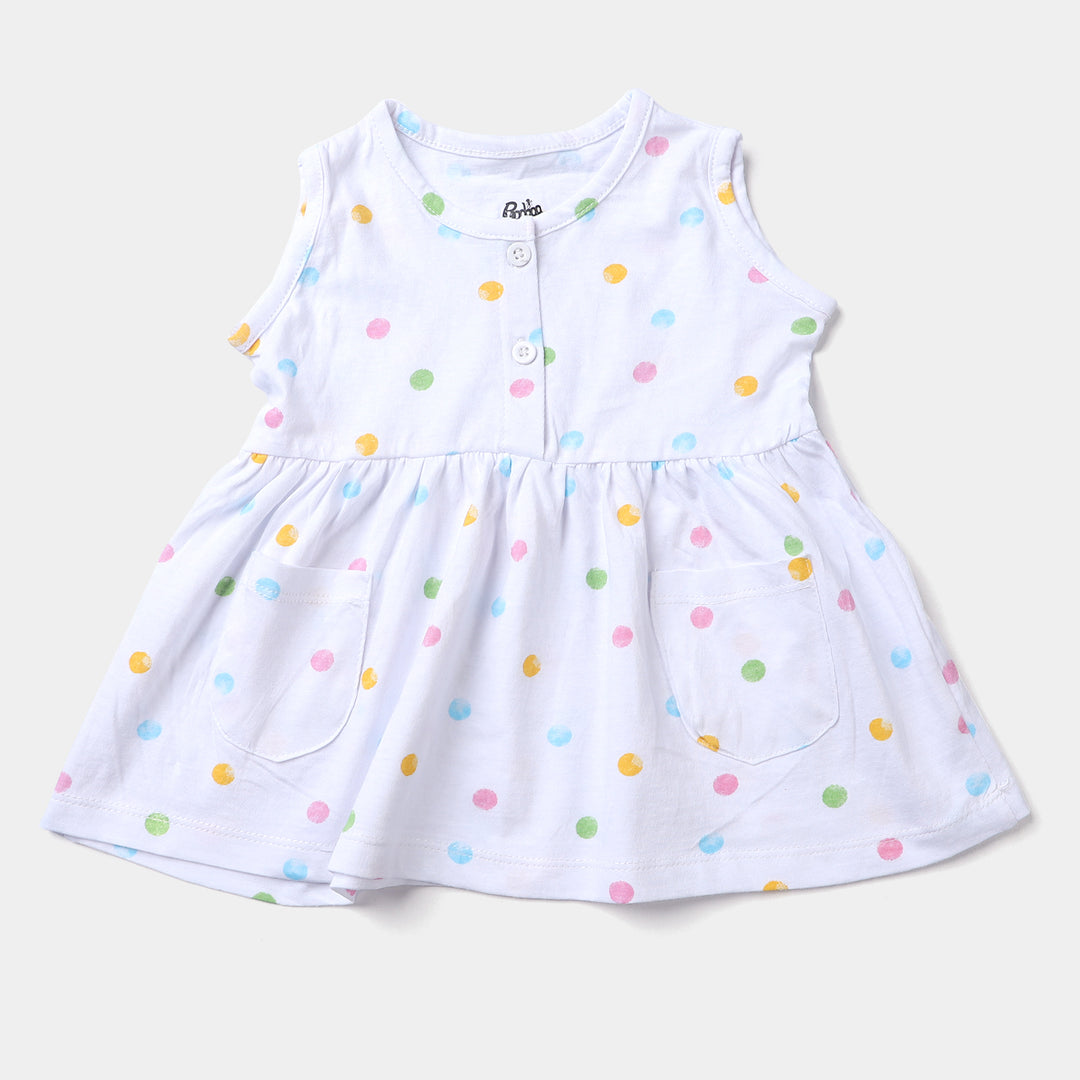 Infant Girls Cotton Terry Knitted Frock Polka Dots-Printed