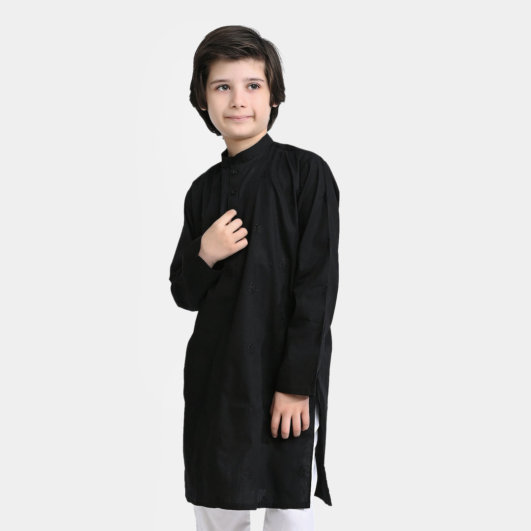 Boys Cotton Embroidered Kurta (Tribal Motif)-BLACK