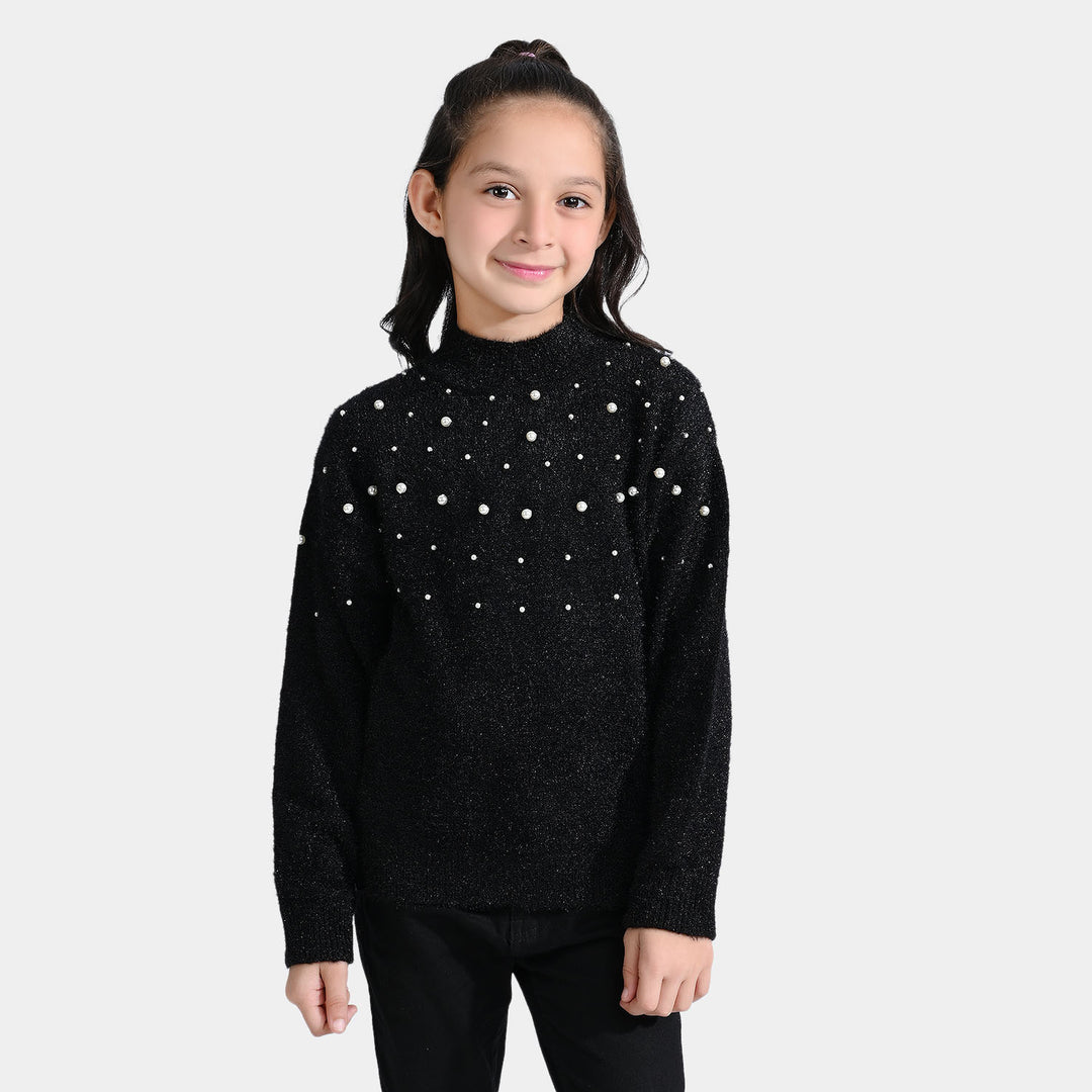 Girls Feather-Acrylic Sweater Feather Pearl-BLACK