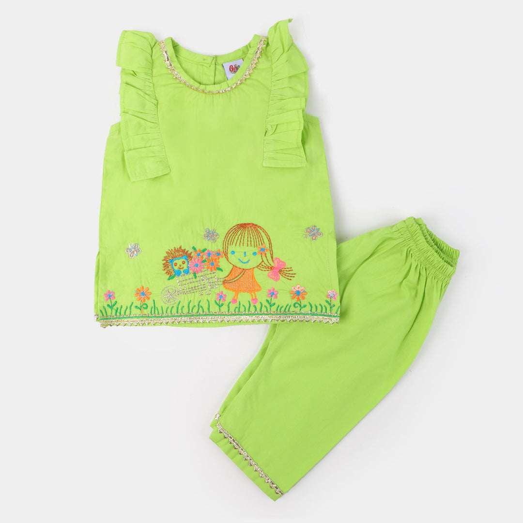 Infant Girls Cotton Poplin 2 PCs Suit Flowers Gallery-Multi