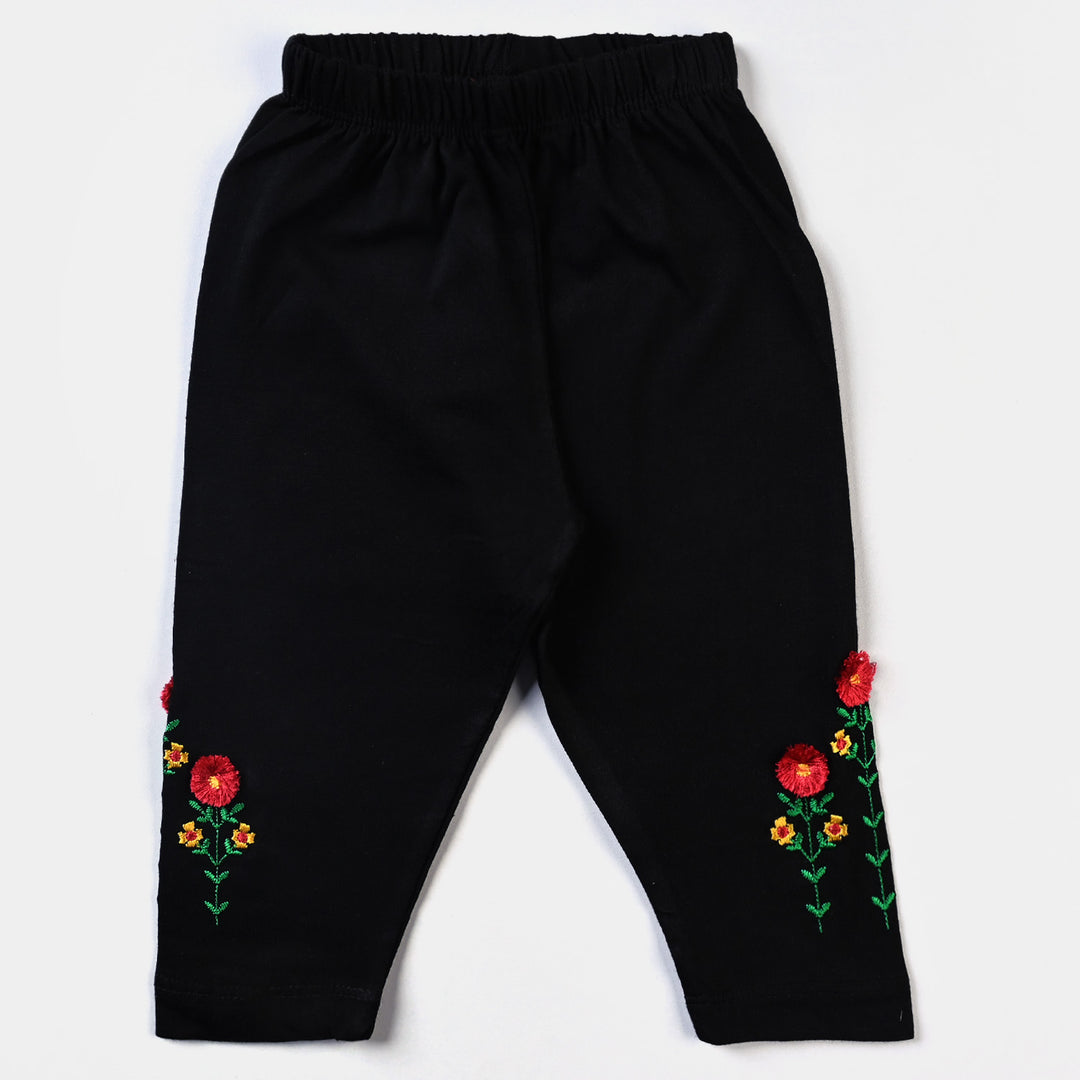Infant Girls Lycra Jersey Embroidered Tights Flowers-Jet Black