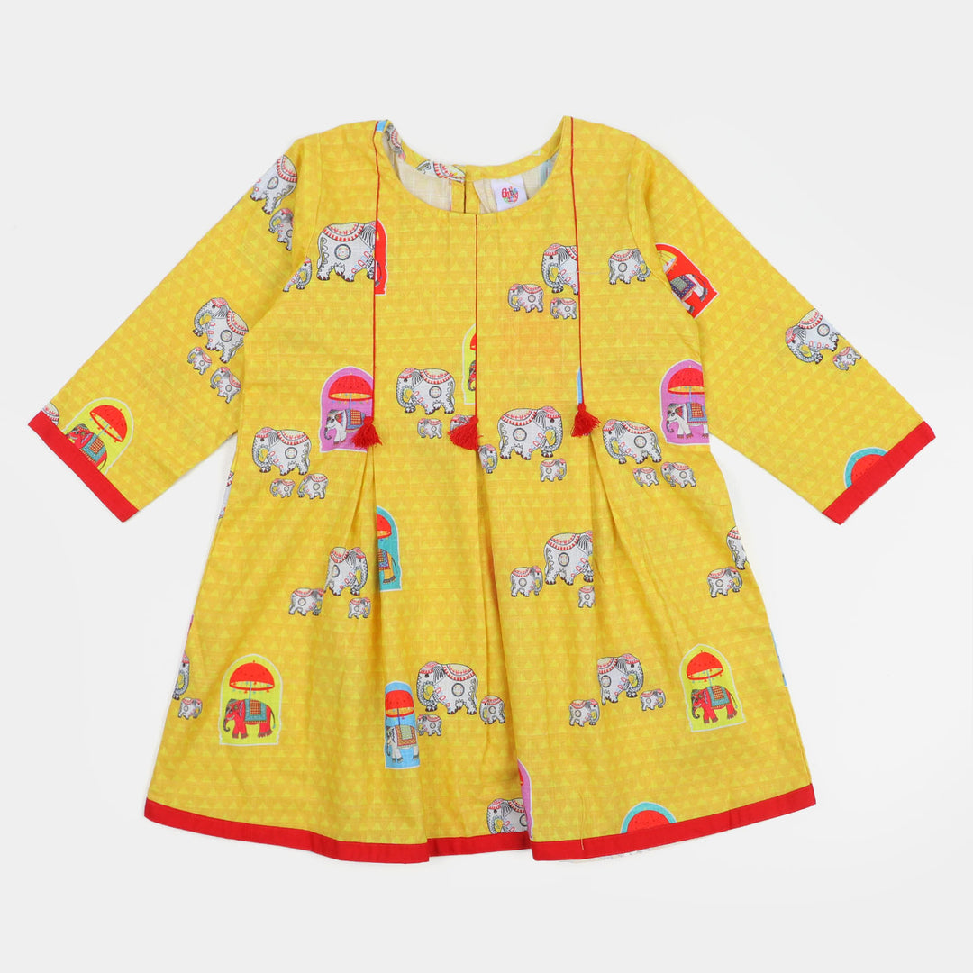 Girls Digital Printed Kurti Elephant Family - Yellow