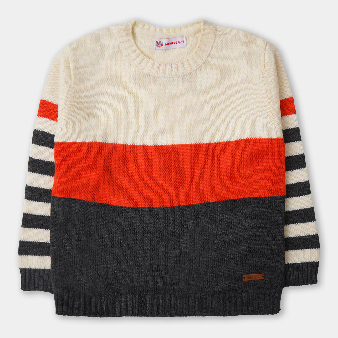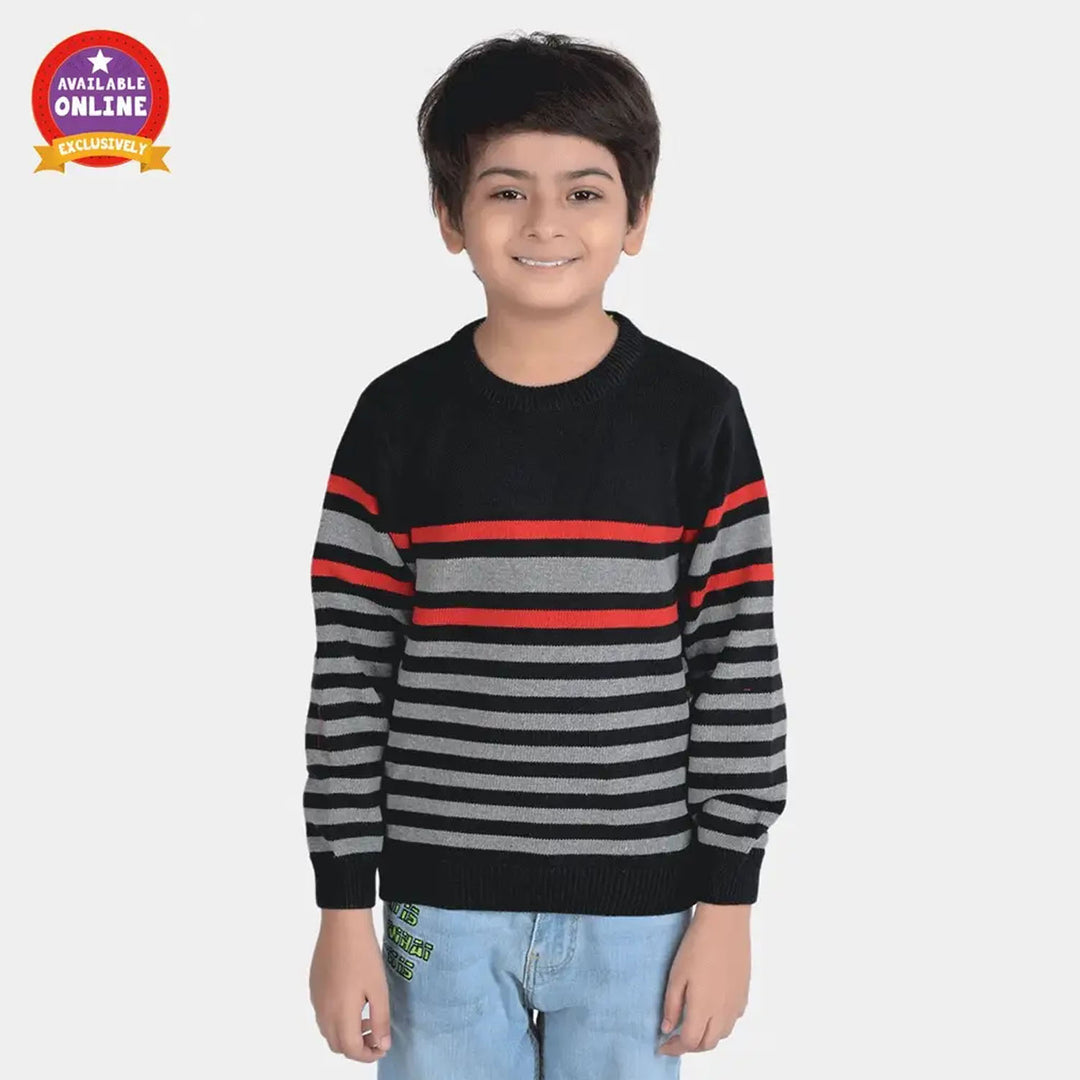 Boys Acrylic Full Sleeves Sweater Striper-Black