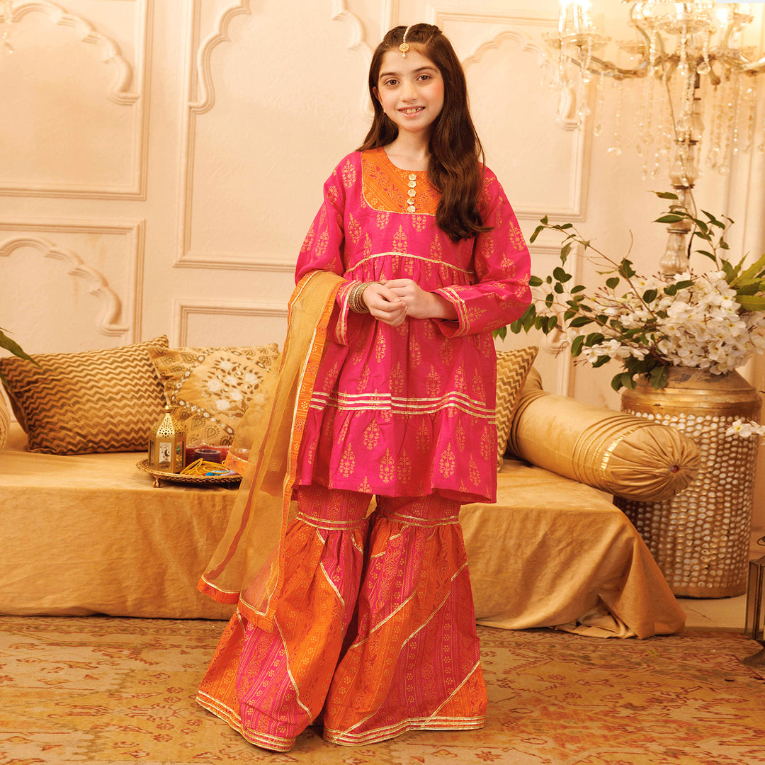 Girls Raw Silk 3PCs Suit Rang Snapshot | Pink