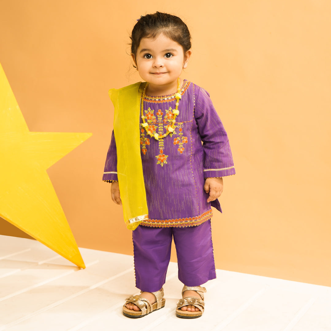 Infant Girls Jacquard 3PC Suit Sada Bahar-Purple