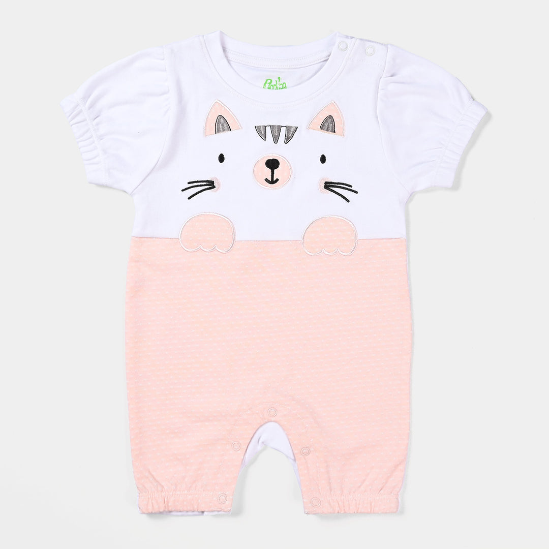 Infant Girls Cotton Interlock Knitted Romper Cat-B.White