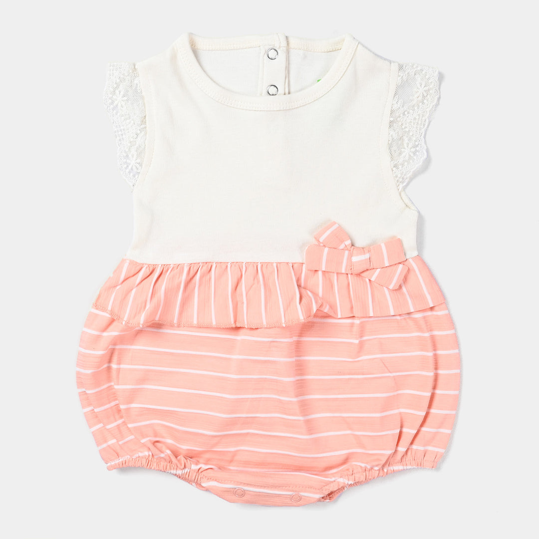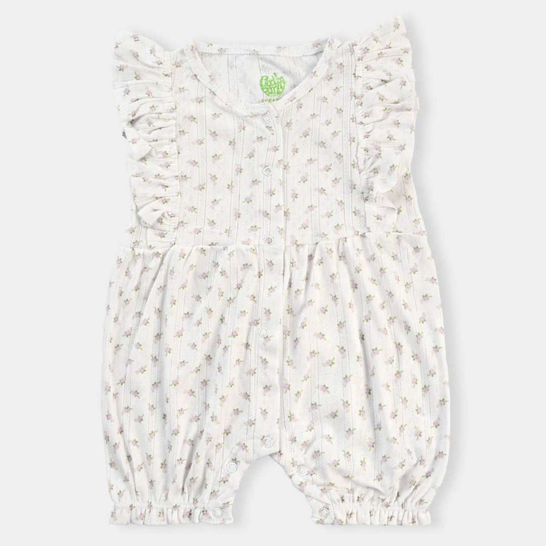 Infant Girls Cotton Interlock Knitted Romper -Vanilla