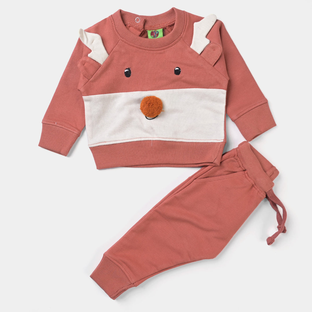 Infant Boys Fleece Knitted 2PC Suit Dear Face-Mecca Orange