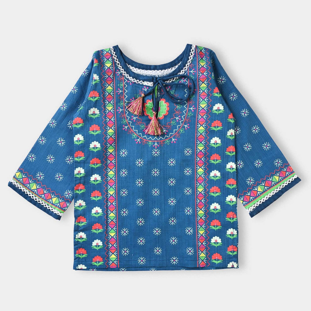 Infant Girls Cotton Slub Printed Kurti Kailash Art-Blue