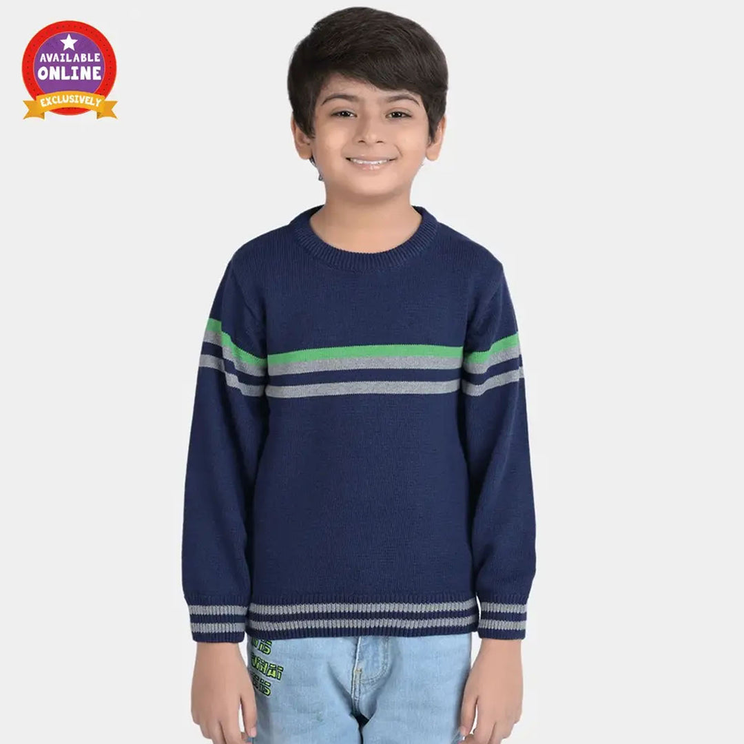 Boys Acrylic Full Sleeves Sweater Striper-Teal