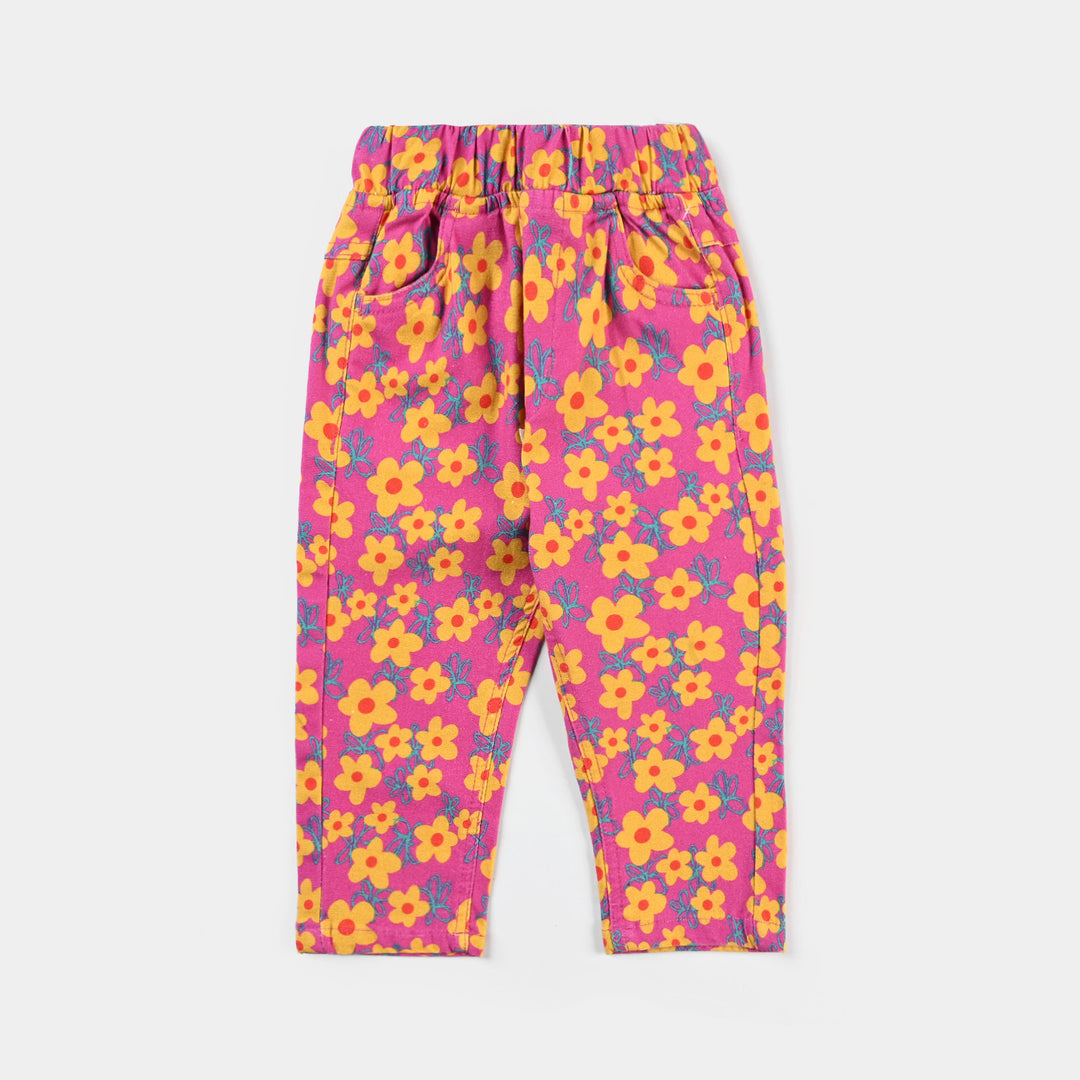 Infant Girls Cotton Twill Jeggings Pink And Yellow
