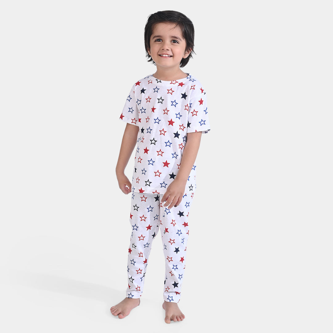 Boys Cotton Jersey Knitted Night Suit Multi Star-White