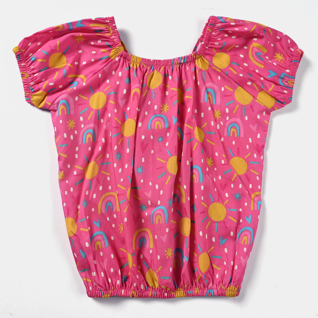Infant Girls Cotton Poplin Casual Top Shiny Starts-Pink