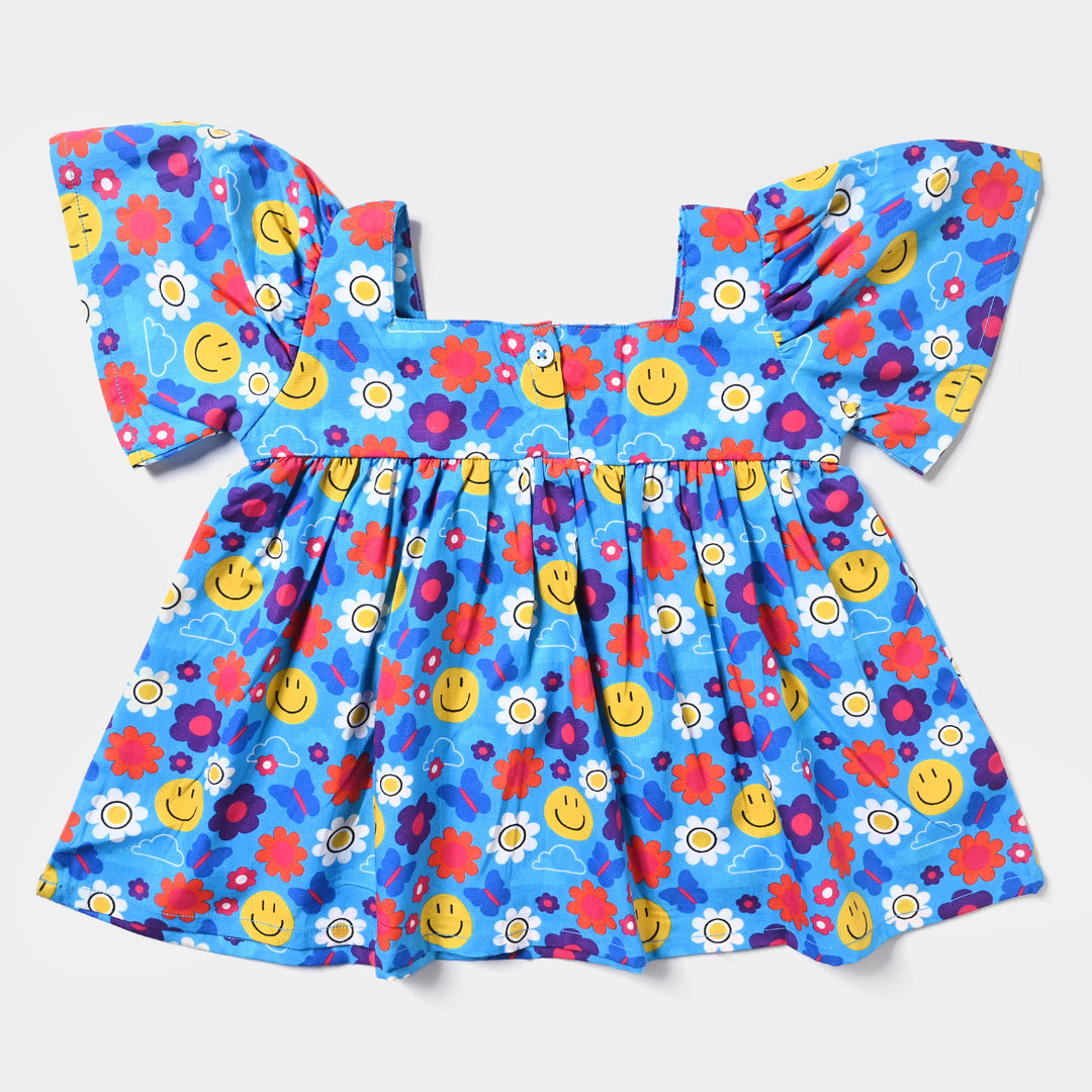 Infant Girls Cotton Poplin Casual Top Smile Town-Multi