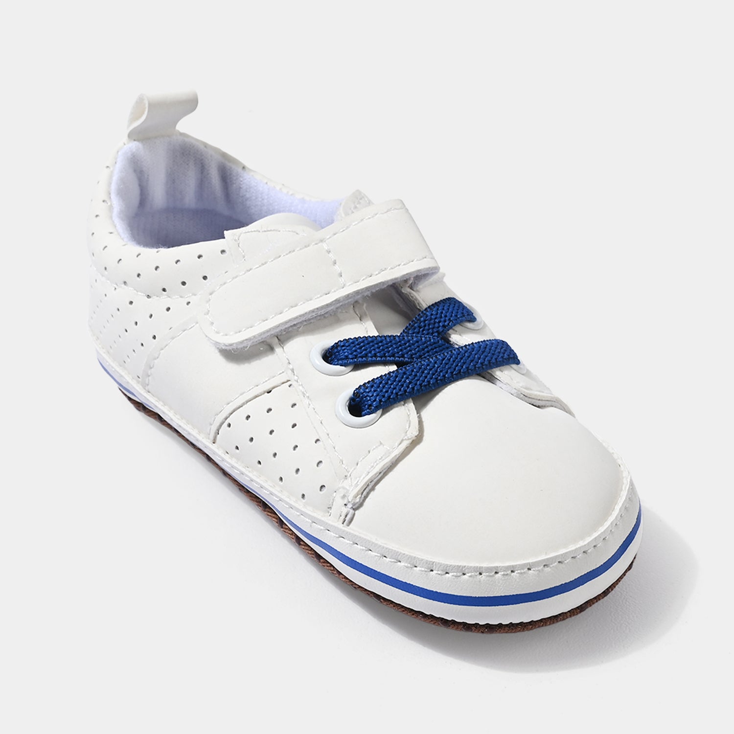 Boys white shoes with laces and a strap, soft and easy to wear for everyday use.