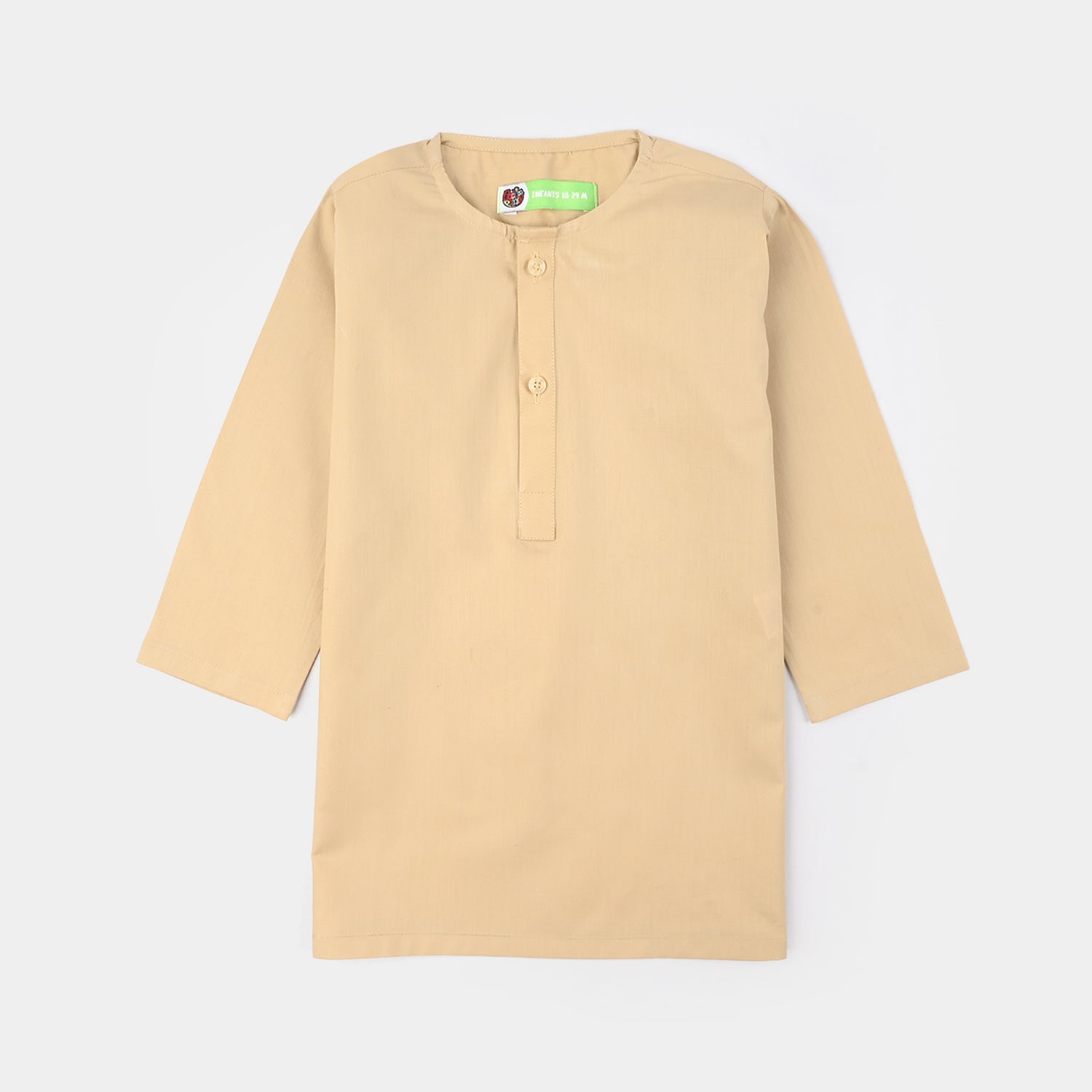 Boys beige cotton poplin kurta pajama featuring a kurta patti and full sleeves, perfect for a classic and comfortable traditional look.