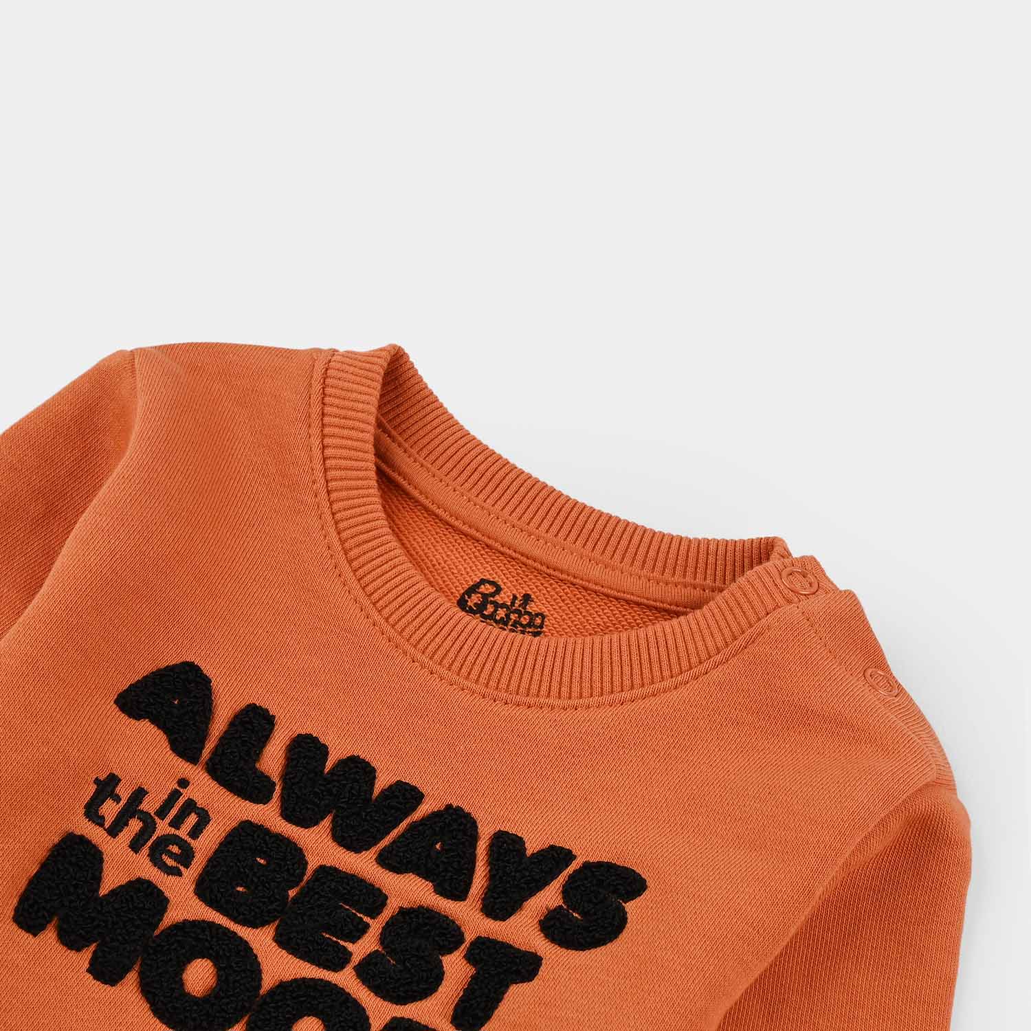 Bachaa Party brings you the best price Infant Boys Jersey/Terry Sweatshirt Best Mood-Orange with express shipping all over Pakistan.