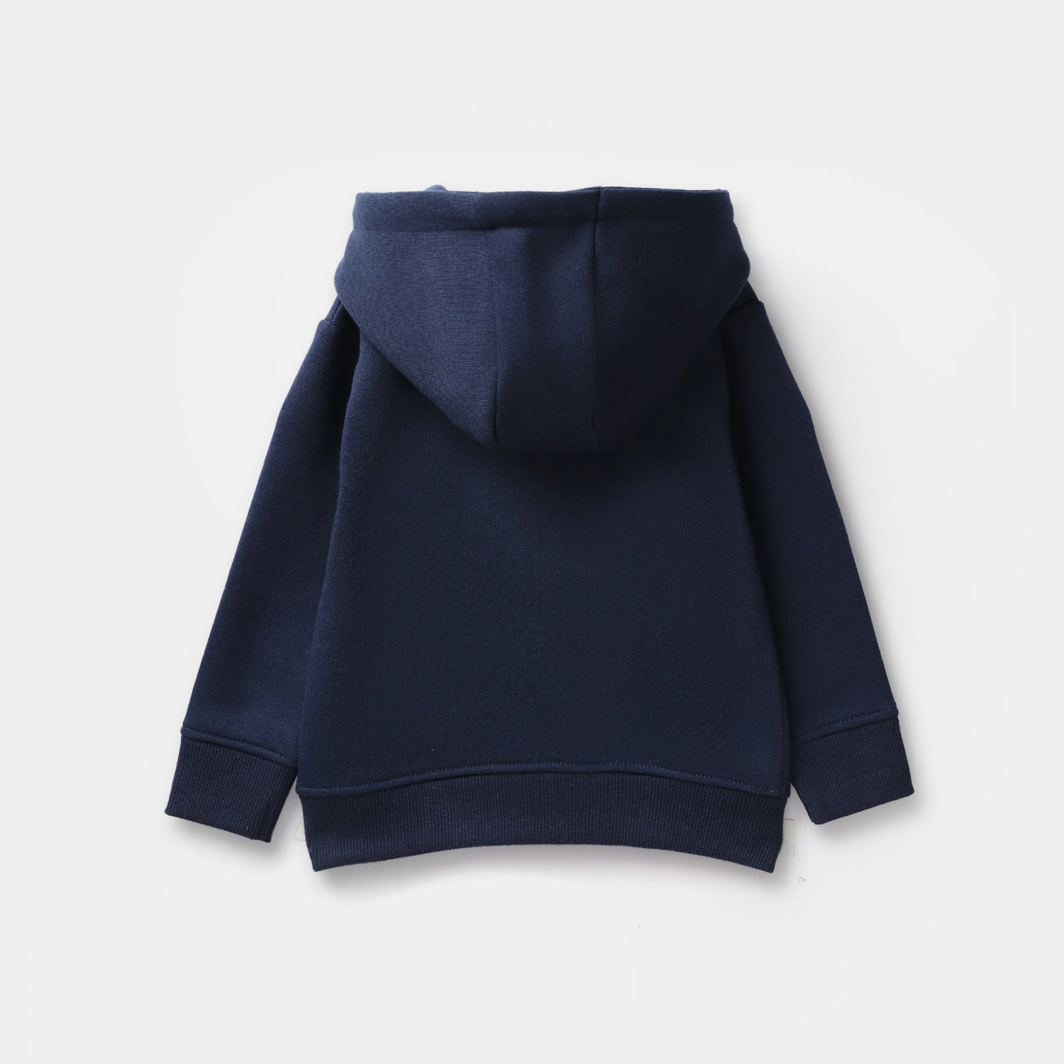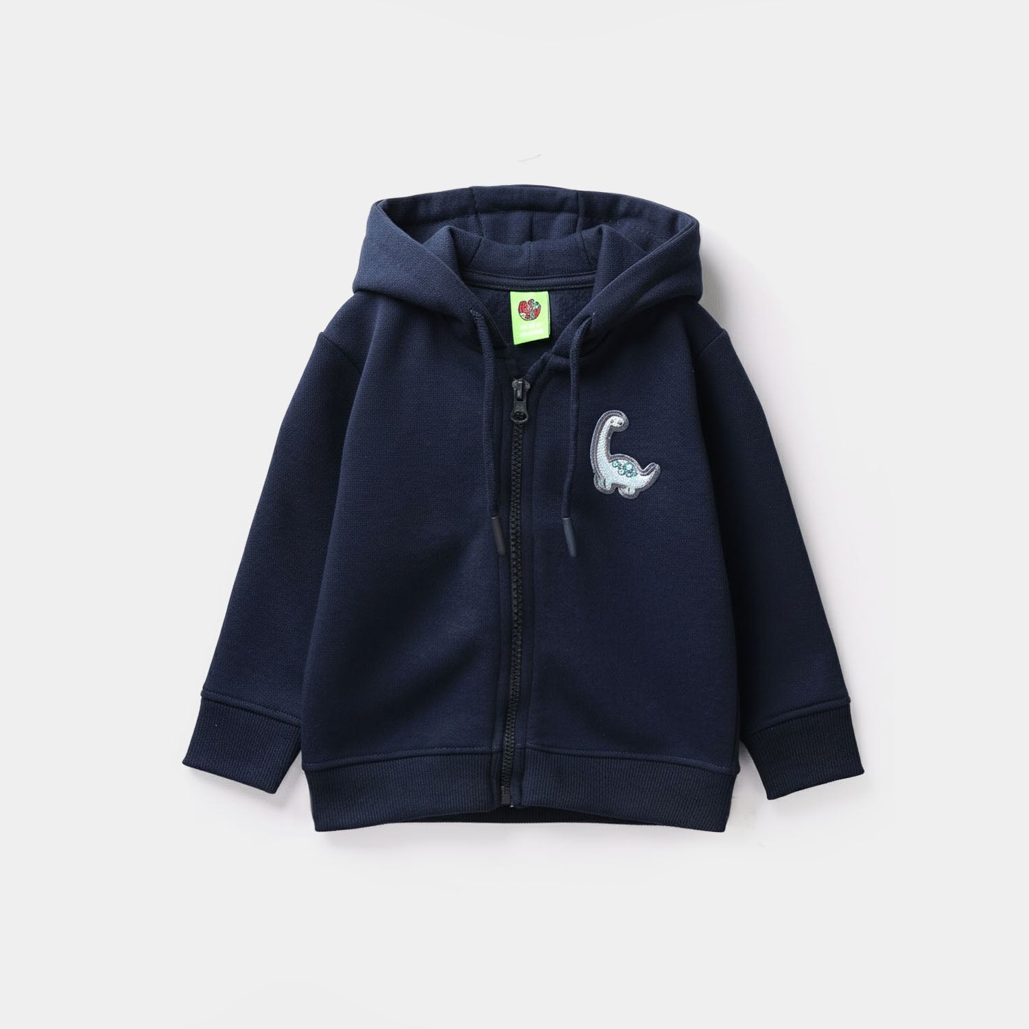 Infant boys navy hoodie zipper with a dinosaur theme and full sleeves, featuring a comfortable design that can be layered with any outfit for all-day wear.