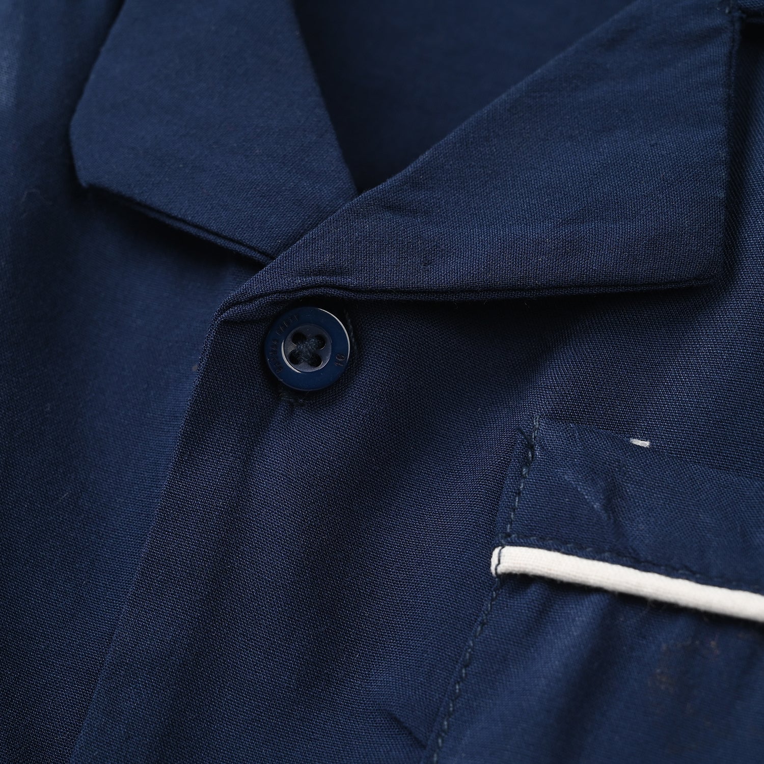 Infant boys' nightwear in blue features a collared, front-open shirt with half sleeves, a pocket, and matching pajama, can be worn all night long for easy comfort.