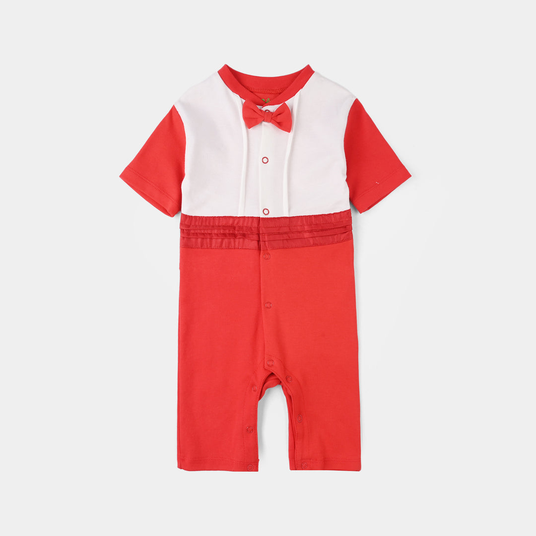Infant Boys Jumbo Pique Knitted Romper (Hot Wheels) - Red