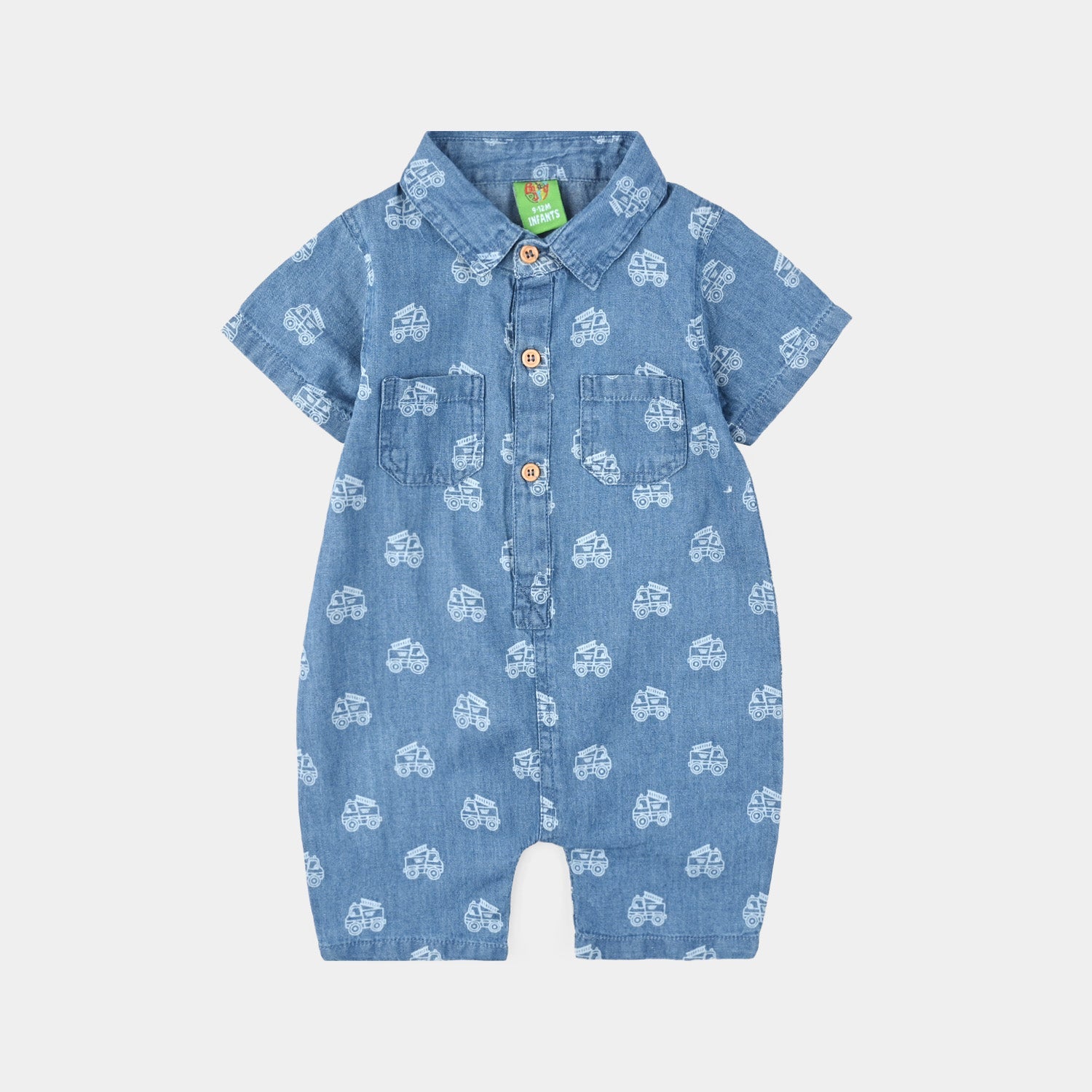 Summer never looked this cute. This printed romper has a button-through closure, front pockets, and short sleeves. Made in soft and breathable summer-friendly fabric.