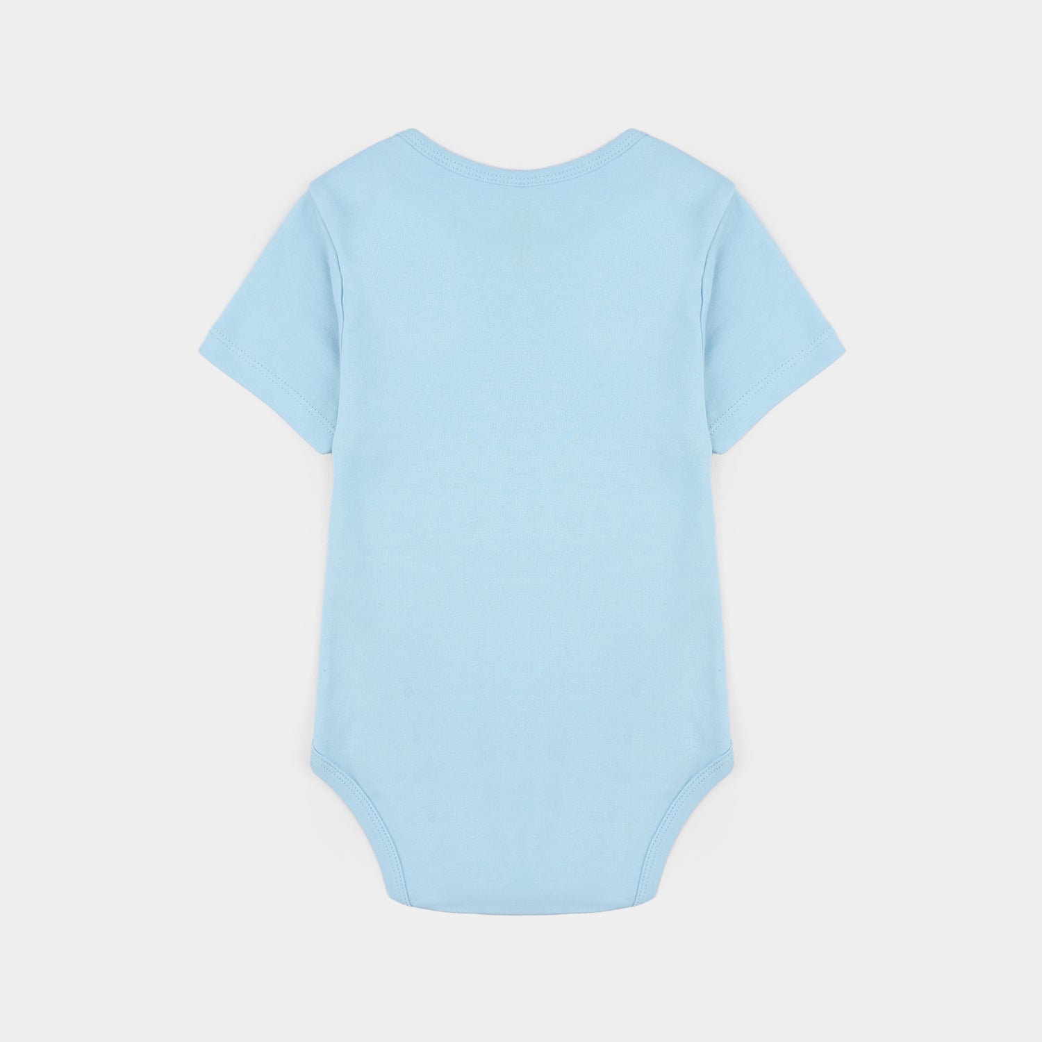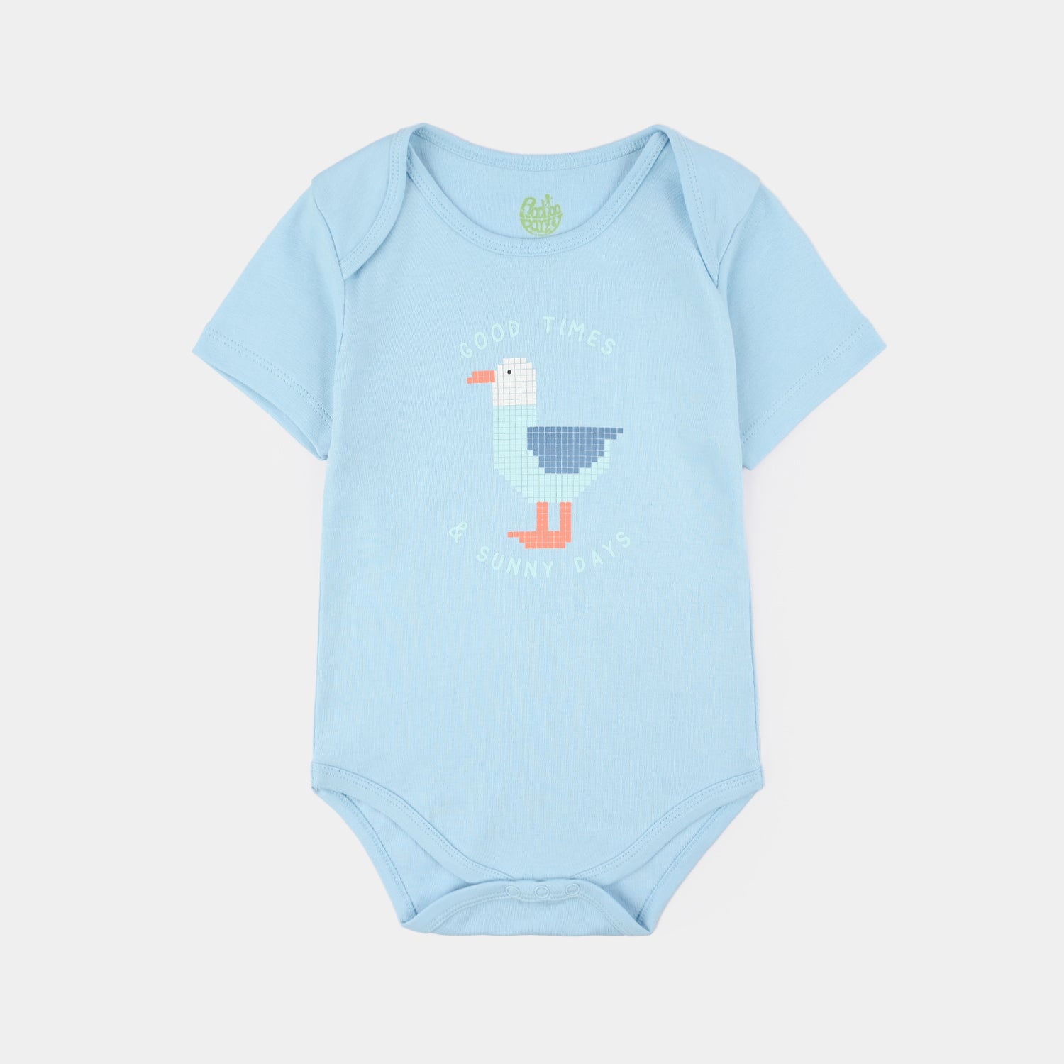 Infant boys’ cotton interlock romper in blue featuring a round neck, half sleeves, and duck graphic print, perfect for a cute and comfortable everyday look.