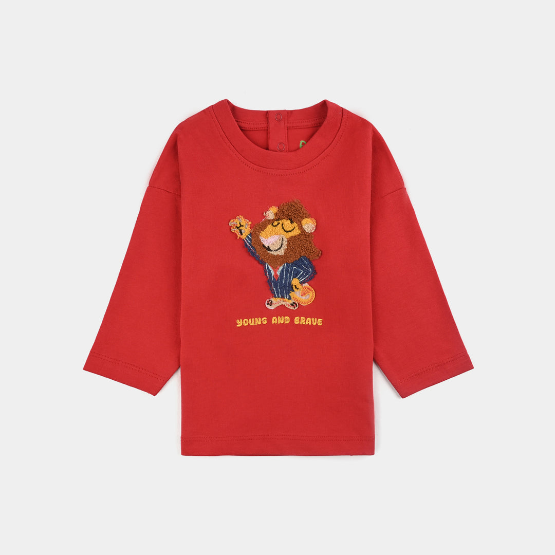 Infant Boys Cotton Jersey Round Neck T-Shirt-Racing Red