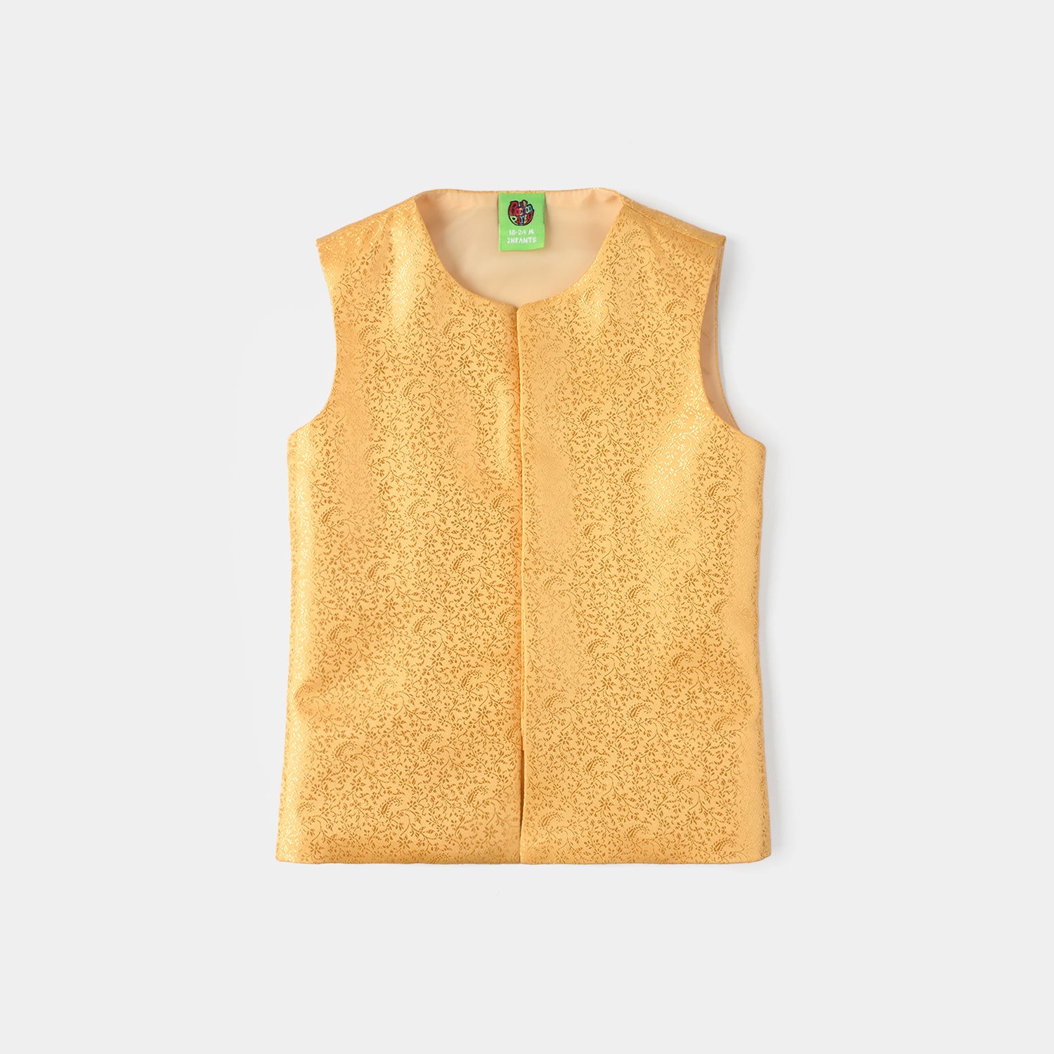 Infant boys' waistcoat in yellow features a classic fit and stylish design, perfect for layering over shirts for formal or festive occasions.